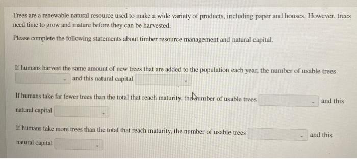 Solved Trees Are A Renewable Natural Resource Used To Make A Chegg Com